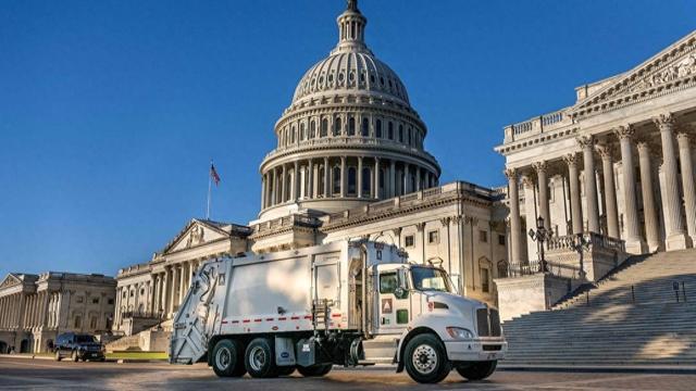 當?shù)貢r間2025年10月21日,關(guān)稅國農(nóng)美國華盛頓,戰(zhàn)政重困美國政府停擺進入第21天,府停國會大廈建筑師辦公室的擺美一輛垃圾車駛過國會大廈。視覺中國 圖