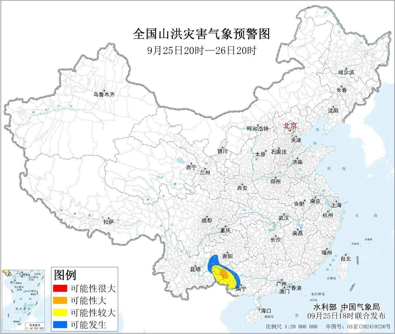 簡介水利部和中國氣象局于今天25日)18時聯(lián)合發(fā)布橙色山洪災害氣象預警。預計,9月25日20時至9月26日20時:廣西西部、貴州西南部、云南東南部等地部分地區(qū)發(fā)生山洪災害可能性較大黃色預警);其中,廣西西