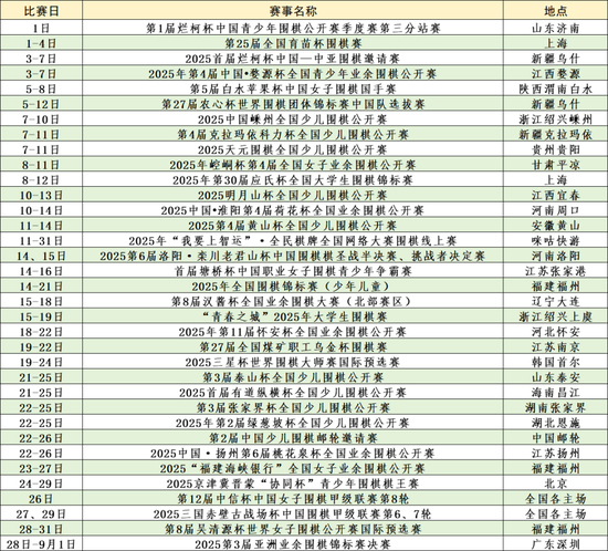 日前,年月農(nóng)心中國圍棋協(xié)會(huì)公布了8月圍棋賽程,圍棋農(nóng)心杯選拔賽將在新疆打響,賽程此外棋圣戰(zhàn)也將進(jìn)行到半決賽和挑戰(zhàn)者決定戰(zhàn)階段。杯選拔 2025年8月國際賽事、新疆全國賽事賽程如下: