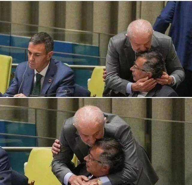 我看到,發(fā)表完激情演講后,巴西總統(tǒng)盧拉,特意抱住了他,親吻了他的頭部。