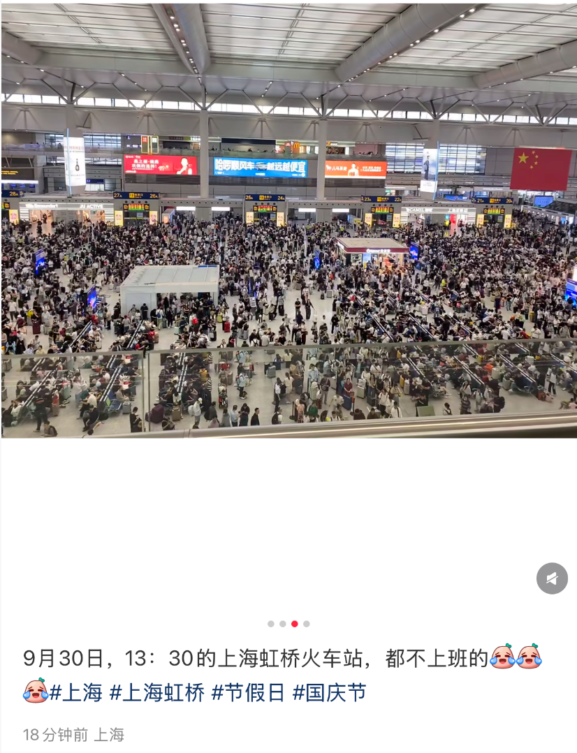 “堪比春運!”不少網(wǎng)友也分享了30日在各地高鐵站的人流情況。