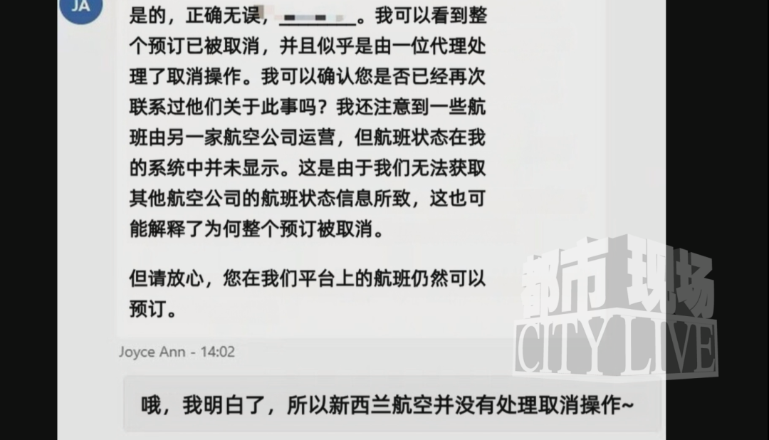 劉女士隨后咨詢了該航班執(zhí)飛航司——新西蘭航空,對方表示取消并非由航司發(fā)起,而是“第三方代理主動取消”。對此,去哪兒網(wǎng)客服回應(yīng)稱“航司沒有讓我們退票,但因為運價問題,票確實無法使用?!?/strong>