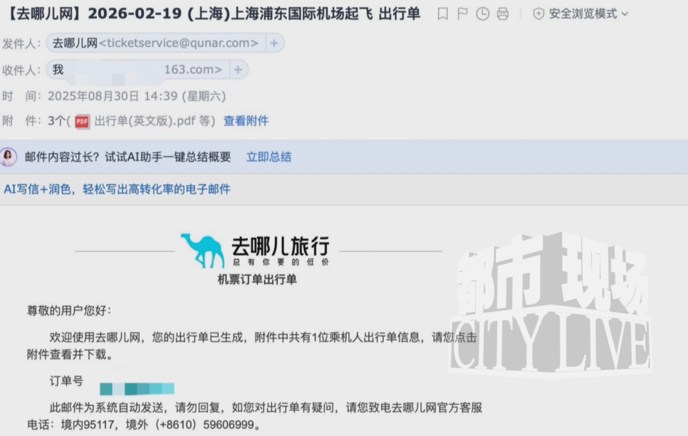 游女士告訴都市現(xiàn)場記者,今年8月29日,退票她以3433元的平臺價格在去哪兒網(wǎng)購買了上海往返新西蘭基督城的機票,第二天她收到了行程單和票號,去哪兒網(wǎng)確認已出票。機票