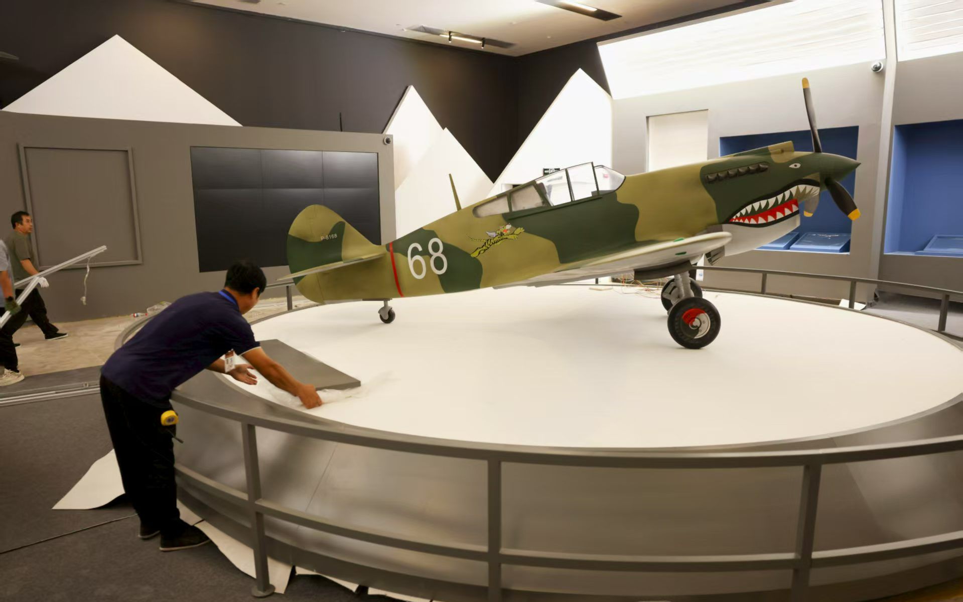 工人在布置相關(guān)飛機(jī)模型。新京報(bào)記者 浦峰 攝
