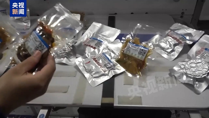 航天員 王杰:有美味白靈菇、油燜筍、豆腐卷、肉末香菇、蝦球馬蹄。還有一些副食,素米粉、太空香粽、桂花芝士年糕。