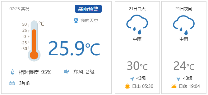 今天早晨至白天多云轉(zhuǎn)陰有中雨,部分地區(qū)暴雨,北京暴雨伴有雷電,藍(lán)色路運(yùn)南風(fēng)二三級(jí),預(yù)警營(yíng)將有調(diào)最高氣溫30℃;夜間雷陣雨轉(zhuǎn)陰,條地鐵南轉(zhuǎn)北風(fēng)一二級(jí),交線京報(bào)最低氣溫24℃。早安中多整新