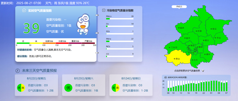 據(jù)北京市生態(tài)環(huán)境監(jiān)測(cè)中心今早7時(shí)數(shù)據(jù),目前實(shí)時(shí)空氣質(zhì)量指數(shù)39,空氣質(zhì)量?jī)?yōu)。