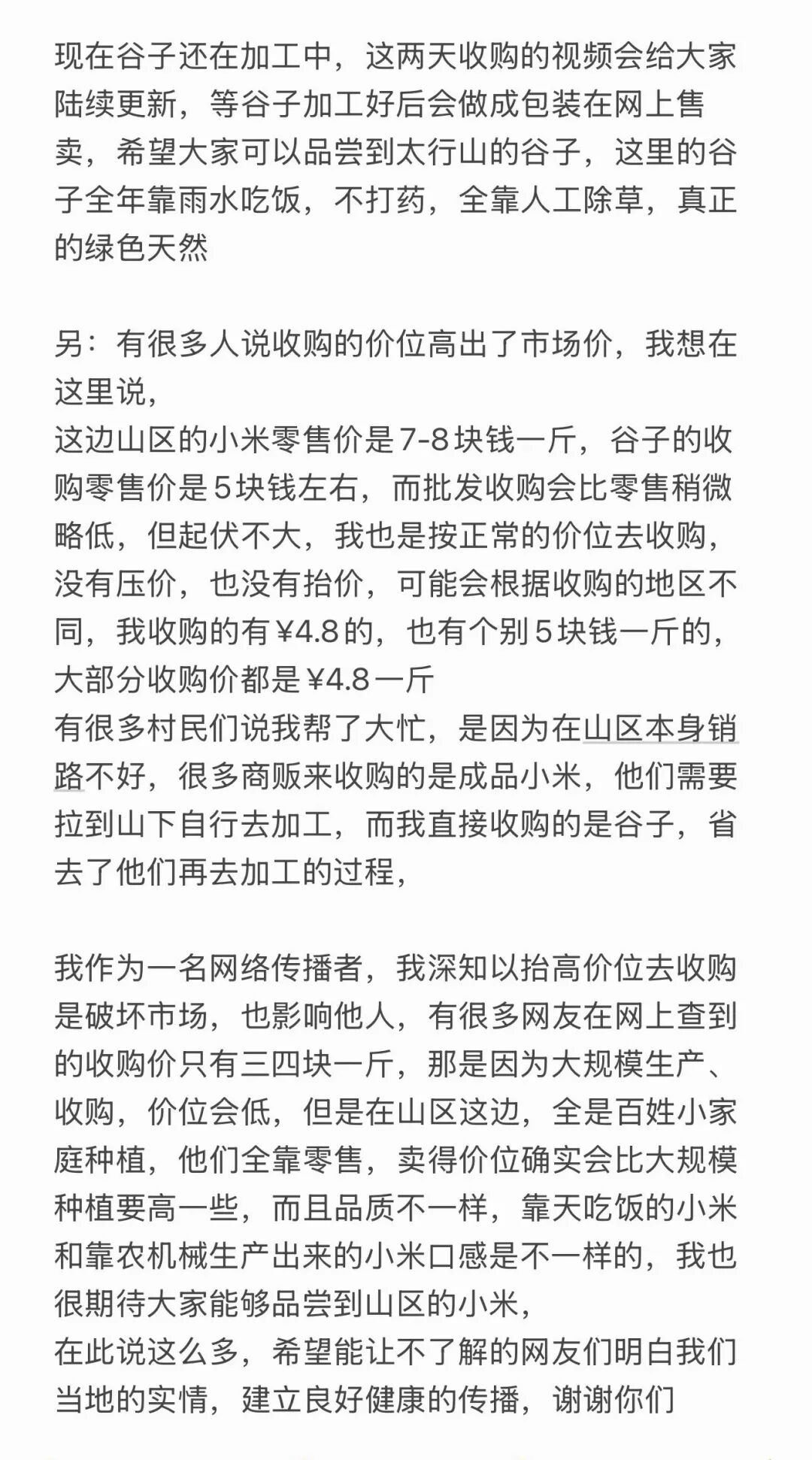 李福貴下鄉(xiāng)收帶殼谷子,被質(zhì)疑遠(yuǎn)高于市場(chǎng)價(jià),本人發(fā)聲明回應(yīng)