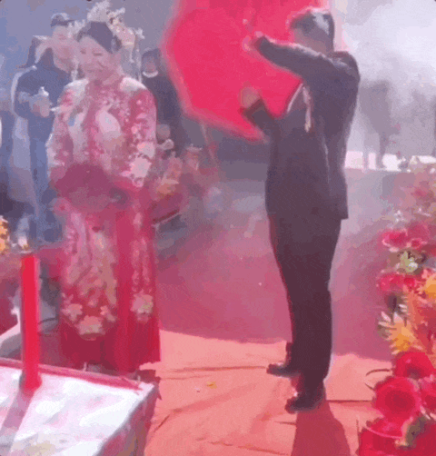 只看畫面,沒人知道是結(jié)婚的喜慶時刻,還以為是古代的酷刑現(xiàn)場。