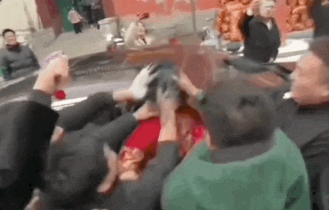 即便有人在一旁大喊——“新娘子摔了”,也沒人停手。