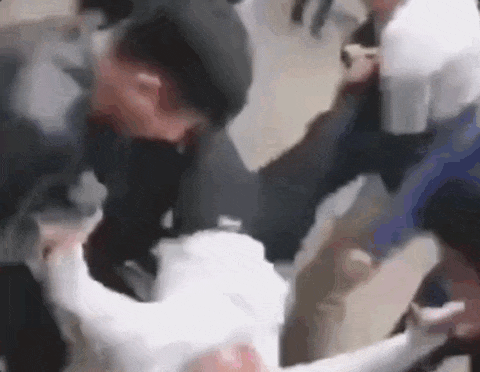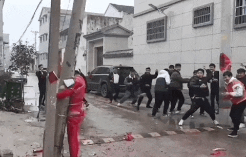 有人被潑面粉、再潑冷水,最后拳打腳踢,不知不覺變成了群毆,掃把敲打,拳頭亂舞。