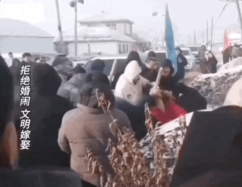 接新娘時,人群蜂擁而至,推搡、拉扯、打鬧,不知情的人以為是群毆現(xiàn)場。
