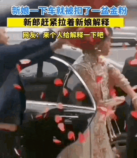 金粉、麩子被倒在頭上,順著領(lǐng)口鉆進衣服里,精心打理的發(fā)型、妝容、禮服,全毀,甚至連婚車也被潑得亂七八糟。