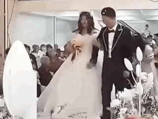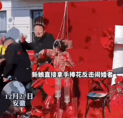 還有人故意撲倒新娘子,來跟新郎“開玩笑“。