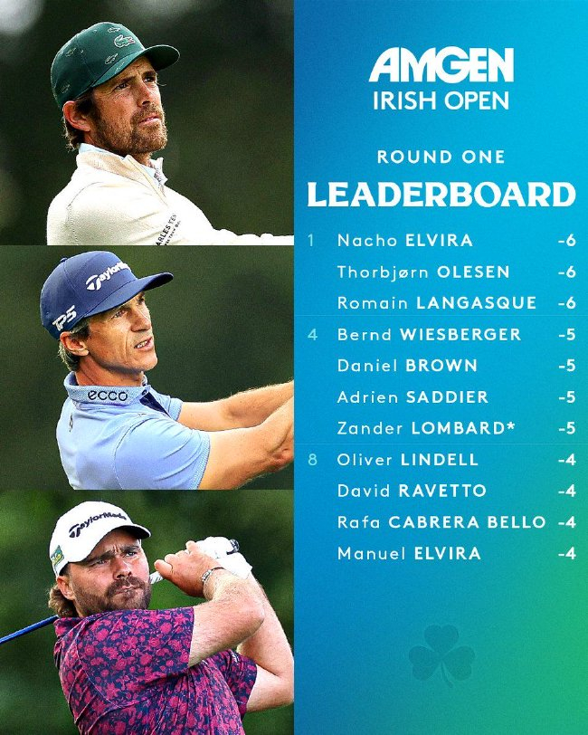 北京時間9月5日,納奇歐-埃爾維拉(Nacho Elvira)、開賽克羅托比約-奧利森(Thorbjorn Olesen)和羅曼-蘭加斯克(Romain Langasque)在愛爾蘭公開賽第一天的館領(lǐng)比賽之后并列領(lǐng)先。在沒有完畢的先麥第一輪,埃爾維拉見到弟弟曼威爾-埃爾維拉(Manuel Elvira)短暫與他并列處于榜首位置。蘭公李昊