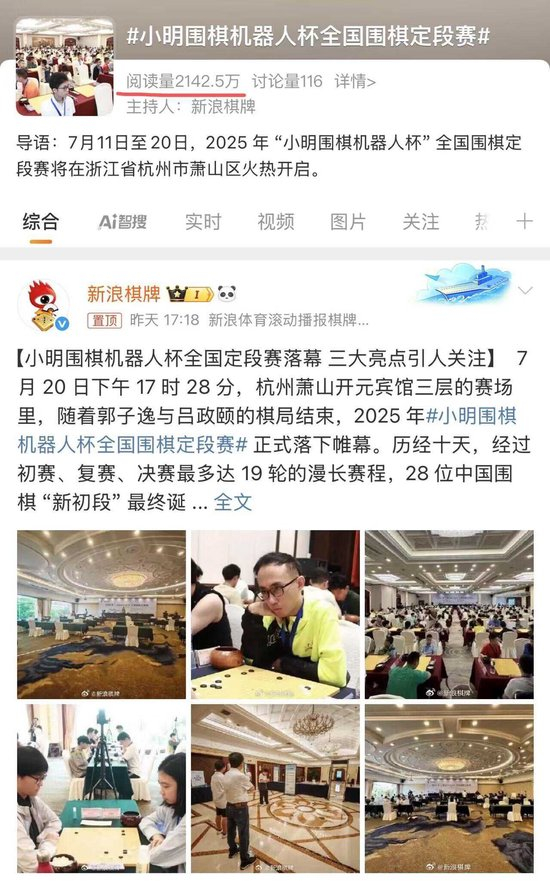 2025 年 “小明圍棋機(jī)器人杯” 全國(guó)圍棋定段賽于7月20日在杭州蕭山圓滿落幕。話題火熱這場(chǎng)被譽(yù)為 “圍棋界高考” 的媒體賽事不僅吸引了眾多棋手的參與,更是關(guān)注在社交媒體和媒體界引發(fā)了熱烈反響,成功火出圈。小明