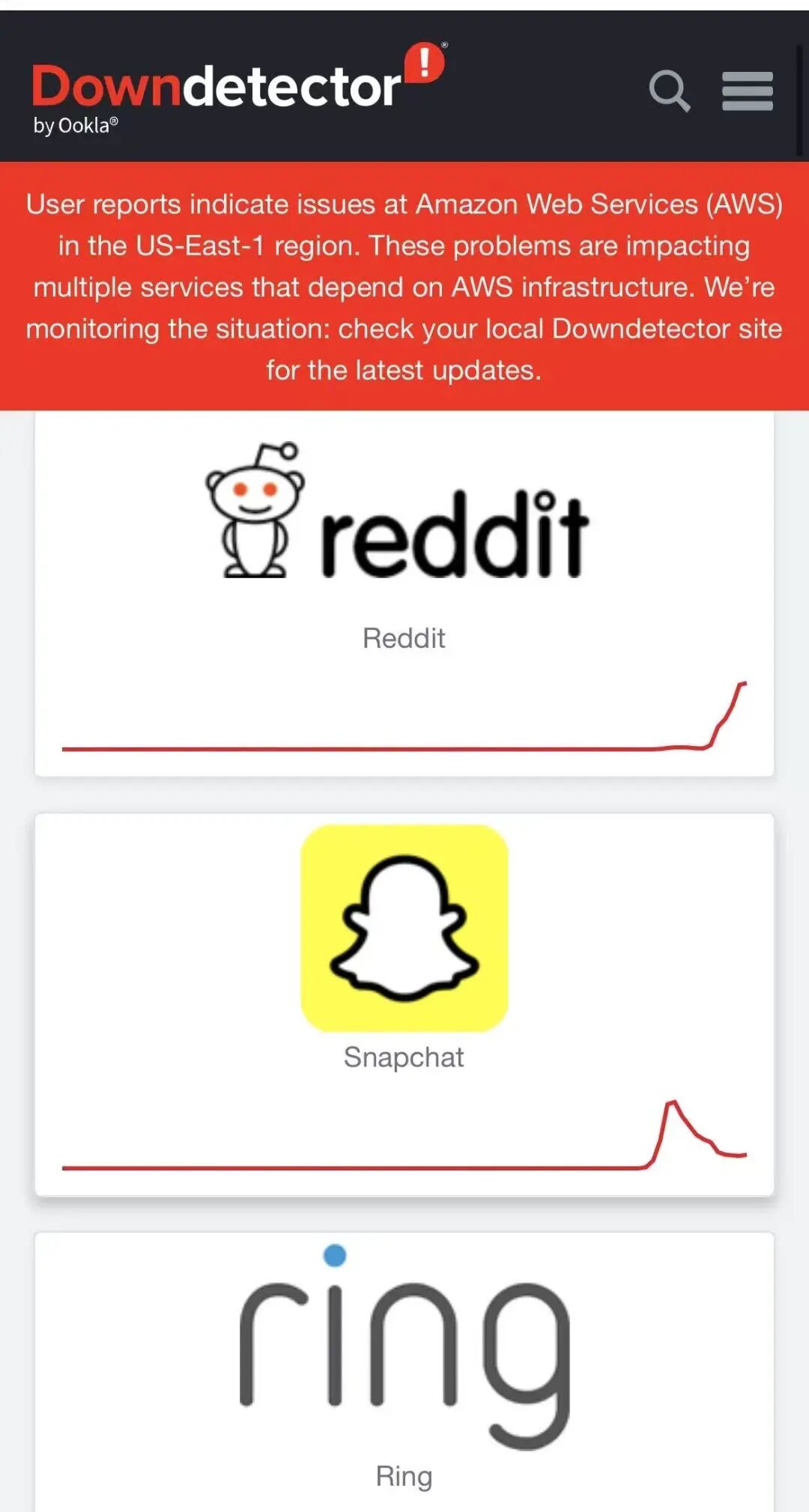 據(jù)全球網(wǎng)絡(luò)監(jiān)測服務(wù)網(wǎng)站DownDetector,罪魁障此次亞馬遜AWS服務(wù)故障影響范圍涵蓋多個(gè)領(lǐng)域。禍?zhǔn)拙唧w來看,亞馬遜旗下網(wǎng)站:亞馬遜電商門戶、Alexa語音助手、Amazon Prime Video;游戲平臺:Steam、Roblox、PlayStation Network、Xbox;社交媒體平臺:Snapchat、Reddit;連鎖餐飲品牌:星巴克、麥當(dāng)勞等平臺均確定受到此次事件影響。