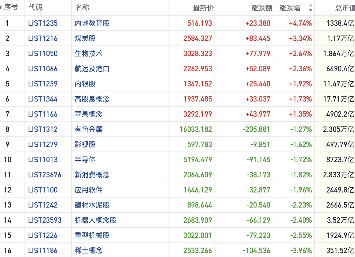 上漲的板塊中,教育股整體強(qiáng)勢(shì),金融、煤炭、石油、核電、航運(yùn)等藍(lán)籌板塊集體走強(qiáng)。