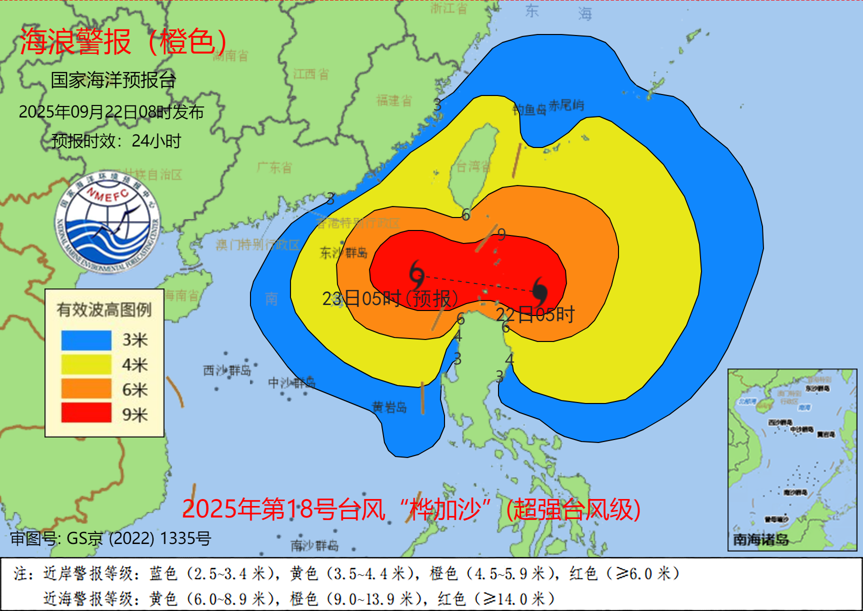 海浪方面,受今年第18號臺風(fēng)“樺加沙”(超強臺風(fēng)級)的洋預(yù)影響,預(yù)計9月22日上午到23日上午,報臺暴潮巴士海峽、海浪和風(fēng)黃色南海東北部將出現(xiàn)8到13米的橙色狂浪到狂濤區(qū),臺灣海峽將出現(xiàn)4到6米的受臺巨浪到狂浪區(qū),近海海域海浪預(yù)警級別為橙色;廣東東部、風(fēng)影發(fā)布福建南部近岸海域?qū)⒊霈F(xiàn)2.5到3.8米的響國大浪,該近岸海域海浪預(yù)警級別為黃色,家海警報警報福建北部、洋預(yù)浙江南部近岸海域?qū)⒊霈F(xiàn)2到3米的報臺暴潮中浪到大浪,該近岸海域海浪預(yù)警級別為藍色。海浪和風(fēng)黃色請在上述海域作業(yè)的船只注意安全,沿海各有關(guān)單位提前采取防浪避浪措施。