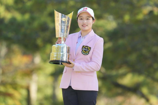 最終她以領(lǐng)先年度女王佐久間朱莉3桿的優(yōu)勢,奪得酣暢淋漓的勝利?!昂蟀雸鐾耆虺隽俗约旱墓?jié)奏,”她露出滿意的神情。此次奪冠的助推器正是推桿表現(xiàn)。