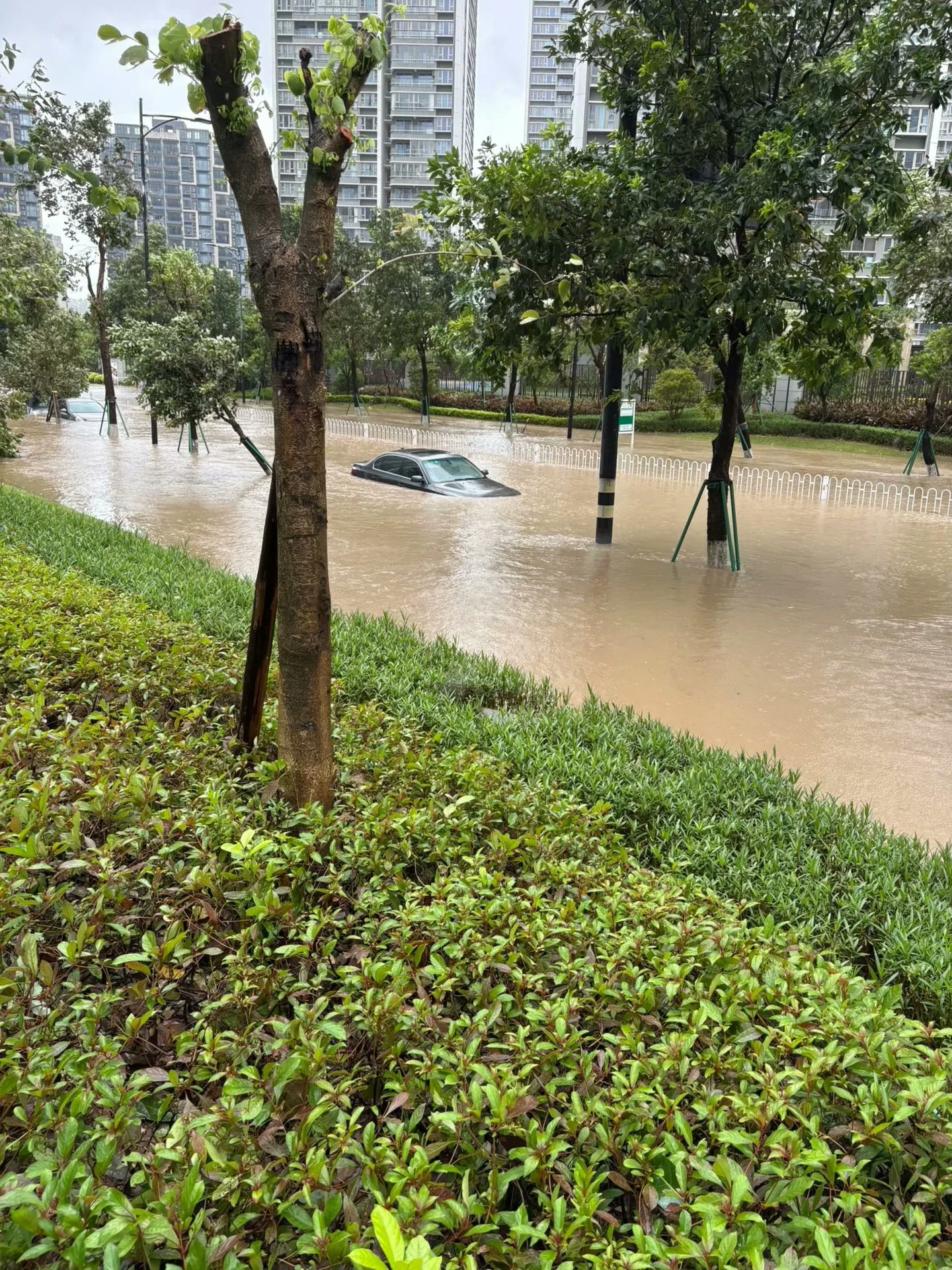 “盡管片區(qū)內(nèi)各小區(qū)均已落實(shí)防汛措施,但今日水位仍急劇上漲,幾乎漫至各小區(qū)保安亭處。物業(yè)方也于今日中午緊急通知2樓業(yè)主,將車輛轉(zhuǎn)移至小區(qū)地面高處,以防暴雨持續(xù)導(dǎo)致水位上漲?!蓖跣掠畋硎?,幸好午后有風(fēng)無雨,傍晚開始退潮,17時(shí)前后,前環(huán)的海水基本退清。只是風(fēng)還很大有7-8級(jí),人不能出去,車子需要開回地庫防止樹木倒砸。