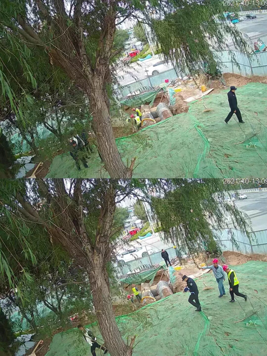 “恒益熱力強(qiáng)接凱元熱電的供熱管網(wǎng),實際上是德州經(jīng)開區(qū)的官方行為?!睋?jù)馮承強(qiáng)提供的現(xiàn)場視頻顯示,2021年10月13日上午9時許,身穿警服的公安人員將凱元熱電工作人員驅(qū)散后,他們組織人員拆除了凱元熱電廠外的高溫水管,而對接上了恒益熱力管道(如下圖)。白鹿新聞注意到,這兩家公司僅一條馬路之隔。