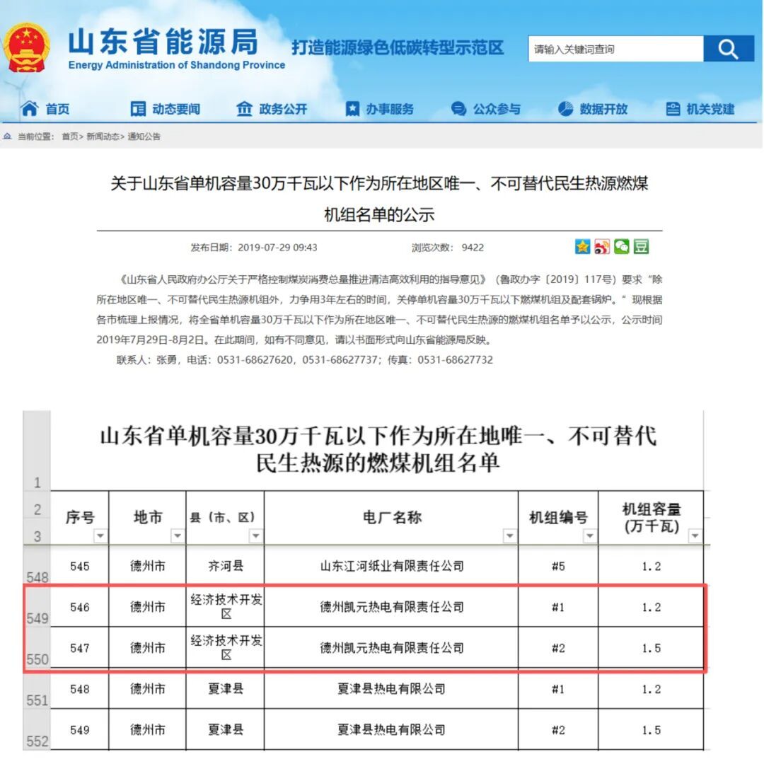 按照國家及山東省相關(guān)關(guān)停政策,凱元熱電須經(jīng)山東省能源局組織專家驗收,最終在其官網(wǎng)上公示才算正式關(guān)停。