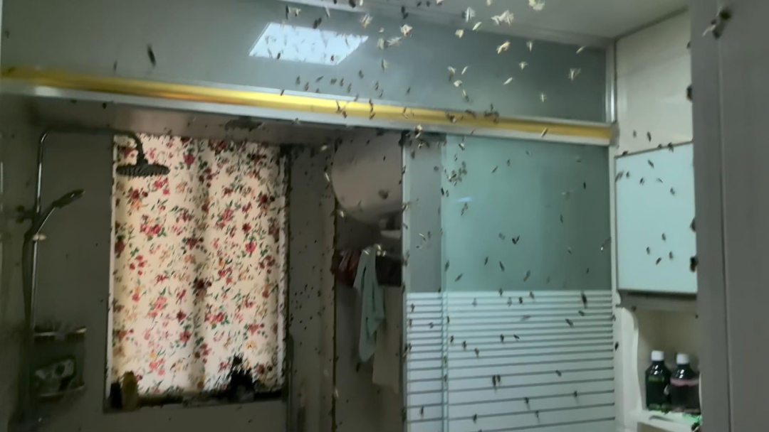 消防員等聯(lián)系上四樓戶主父親,打開房門的瞬間,所有人都驚呆了 —— 成群蜜蜂像 “迎賓隊伍” 一樣迎面飛舞,陽臺、客廳、臥室到處都是它們的身影,而浴室更是 “重災(zāi)區(qū)”,一推開門,黑壓壓的蜂群瞬間噴涌而出,讓人下意識往后退。