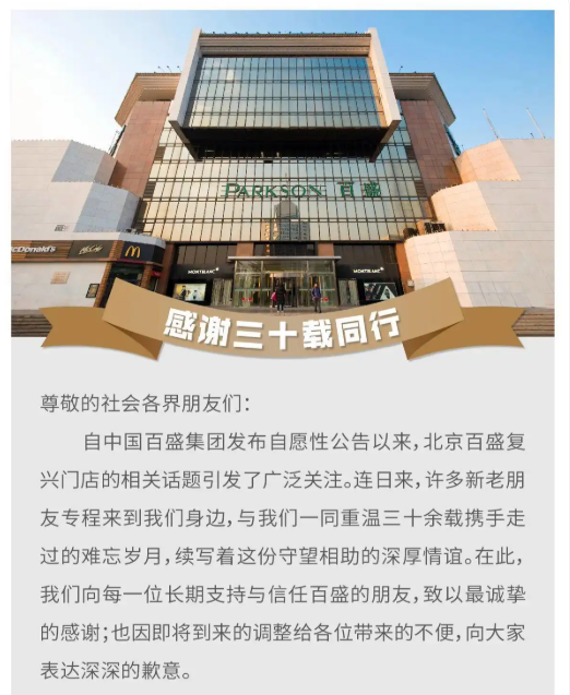 您的當前位置:首頁 >百科 >官宣閉店!運營31年的北京復興門百盛年底將停業(yè) 正文