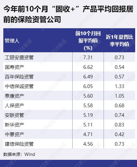 2、“固收+”產(chǎn)品:工銀安盛資管前十個(gè)月平均回報(bào)超7%
