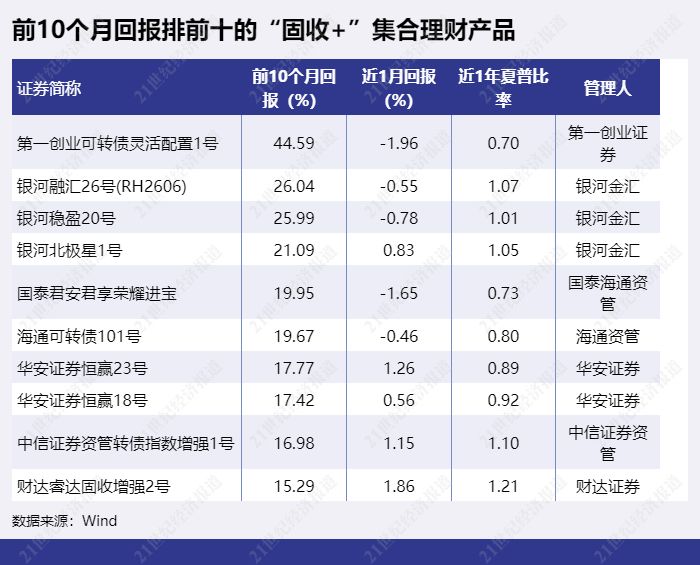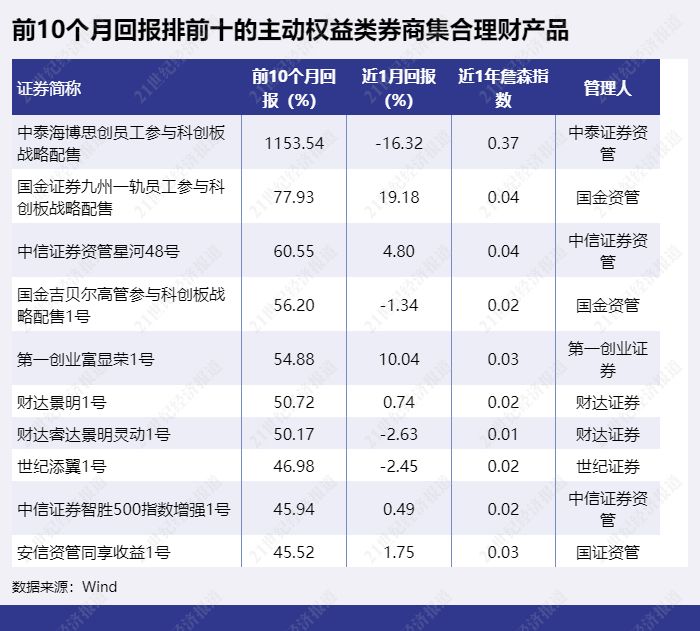 2、“固收+”產(chǎn)品:上榜“固收+”券商集合理財(cái)中一半10月收益為負(fù)