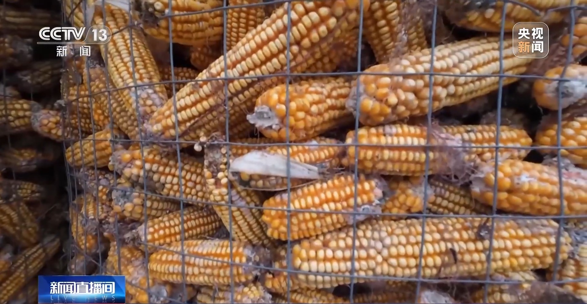 農(nóng)民溫玉倉(cāng)今年種了6畝玉米,由于玉米成熟后遭遇連陰雨,部分玉米棒的頂部苞葉被水浸濕而發(fā)生了霉?fàn)€。為了把收回來的玉米保存好,村民們紛紛在自家門前扎起便于通風(fēng)晾干的大鐵籠子,每籠玉米有1000多斤。
