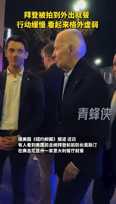 11月5日,拜登被拍據(jù)中國(guó)青年報(bào)青蜂俠Bee援引美國(guó)《紐約郵報(bào)》報(bào)道,到外近日有人看到美國(guó)前總統(tǒng)拜登和前防長(zhǎng)奧斯汀在弗吉尼亞州一家意大利餐廳就餐。出餐此前