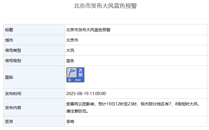受雷雨云團影響,風藍預計19日12時至23時,警新京報北京市部分地區(qū)有7、北京布8級短時大風,市發(fā)色預請注意防范。風藍