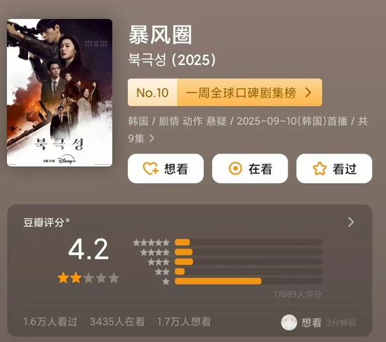 而且劇中反派角色多使用中文等內(nèi)容引發(fā)中國網(wǎng)友強(qiáng)烈抵制情緒,目前該劇豆瓣評(píng)分已跌至4.2分。賢徹
