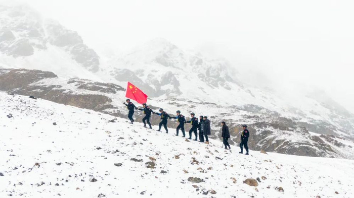 民警們夏天徒步翻越海拔4800米的達(dá)坂,冬天在暴風(fēng)雪里艱難前行,50公里的路程常常要走兩個(gè)多小時(shí),回來(lái)時(shí)眼睛被雪地反光刺得紅腫流淚,但他們從未想過(guò)放棄,始終堅(jiān)持“絕不讓領(lǐng)土失守”的信念。