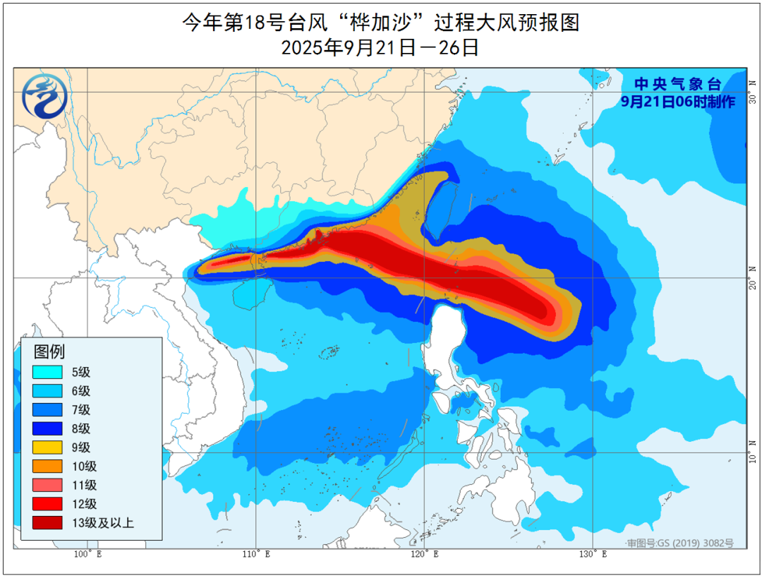 預(yù)計(jì)21日至26日,巴士海峽、今年南海北部、最強(qiáng)北部灣、瓊州海峽等海域及華南沿海將先后有9~11級(jí)大風(fēng),臺(tái)風(fēng)中心經(jīng)過的附近海域或地區(qū)有12~17級(jí)大風(fēng),陣風(fēng)17級(jí)以上。