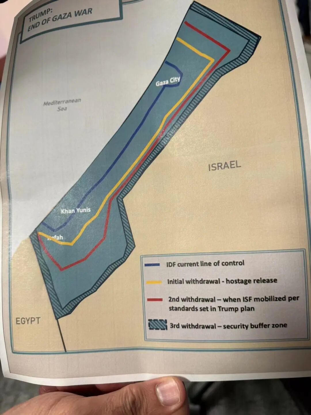 看披露出來(lái)的圖片,以色列和內(nèi)塔尼亞胡在交談,特朗普手里拿的,就是以色列分階段撤離加沙態(tài)勢(shì)圖,內(nèi)塔尼亞胡則在指指點(diǎn)點(diǎn)。