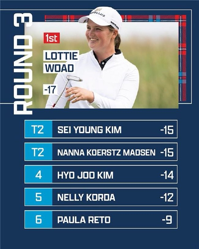 內(nèi)莉·科達(dá)沒(méi)有吞下柏忌,但在蘇格蘭相對(duì)平靜的天氣中,美國(guó)選手僅抓到兩只小鳥(niǎo)。她打出70桿,導(dǎo)致她落后沃德5桿,滑落到了第五位。